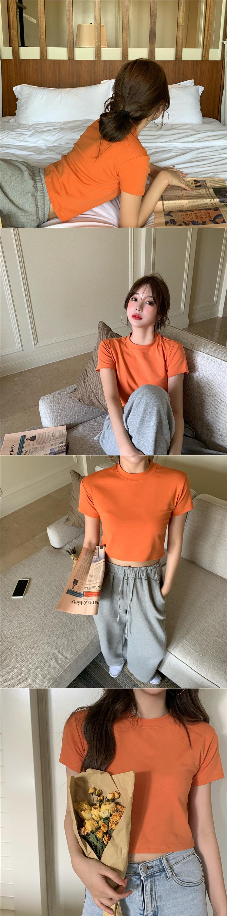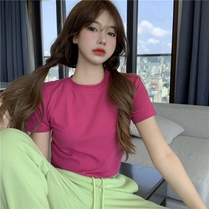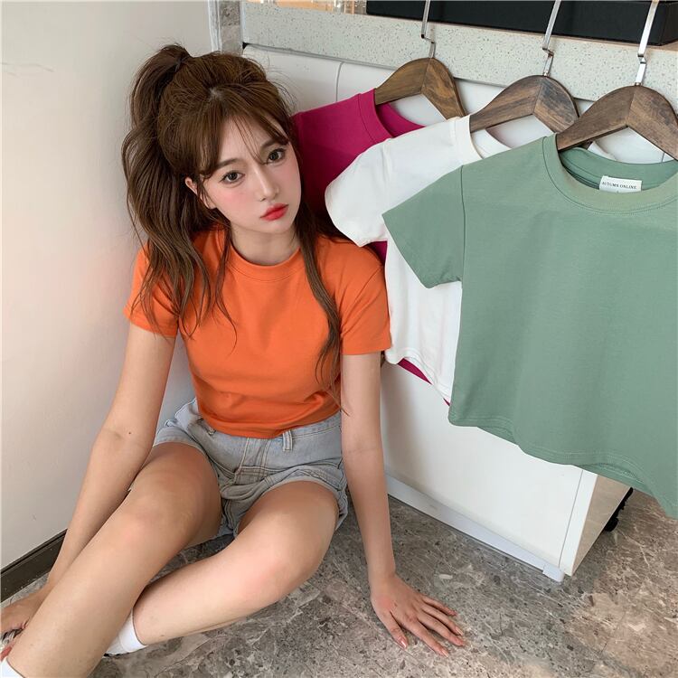 カラークロップドショートTシャツ サマードレス ウェストスリムフィット 夏物 Xiaofeijia90293500043