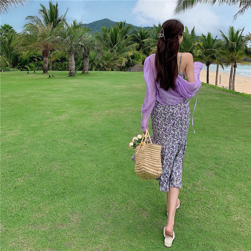 色:ピンクの日焼け止め,紫の日焼け止め,ピンクの花柄スカート,パープルフローラルスカート