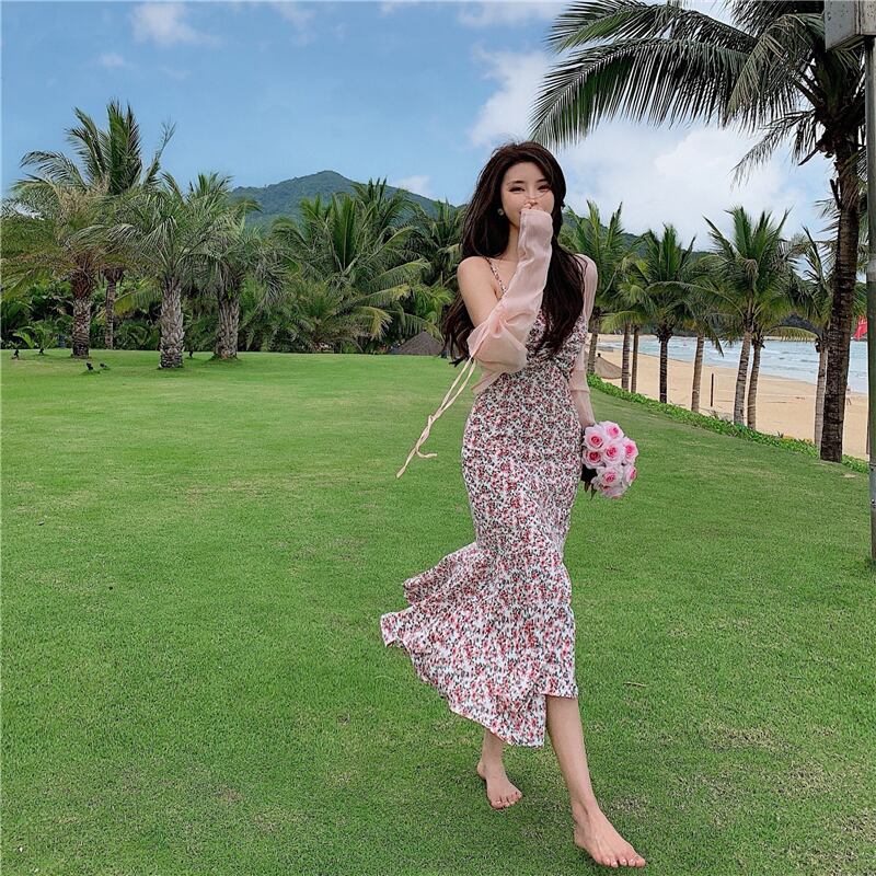 フローラルドレス レディースサマーショートシャツ ハイウェストウェストスカート 夏物 花柄 Xiaofeijia23750130795