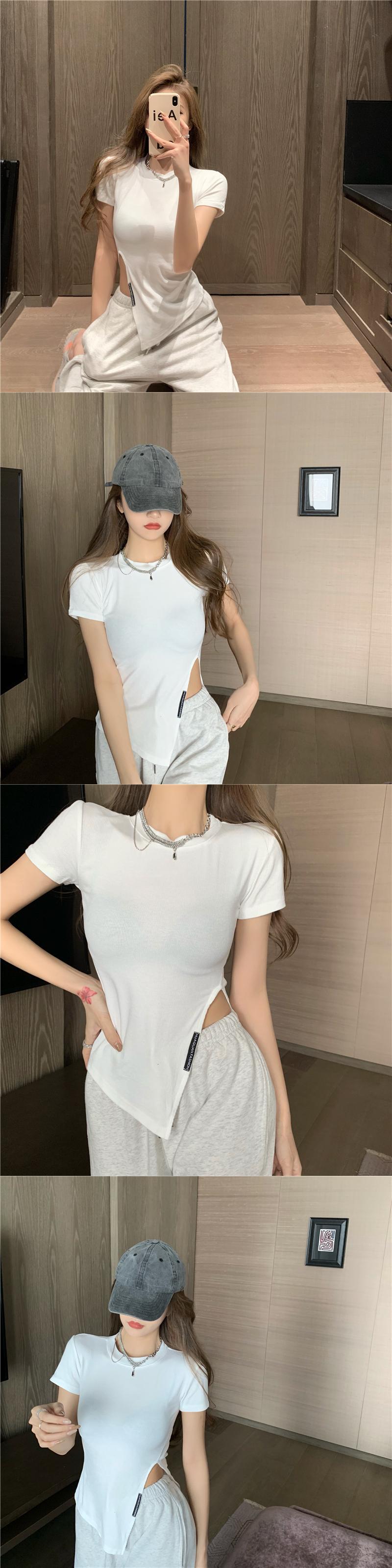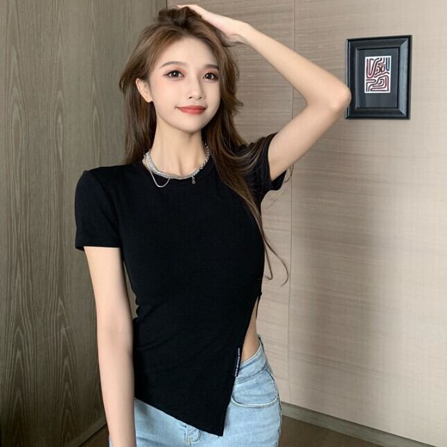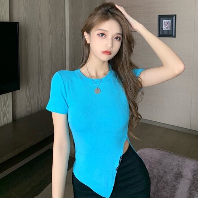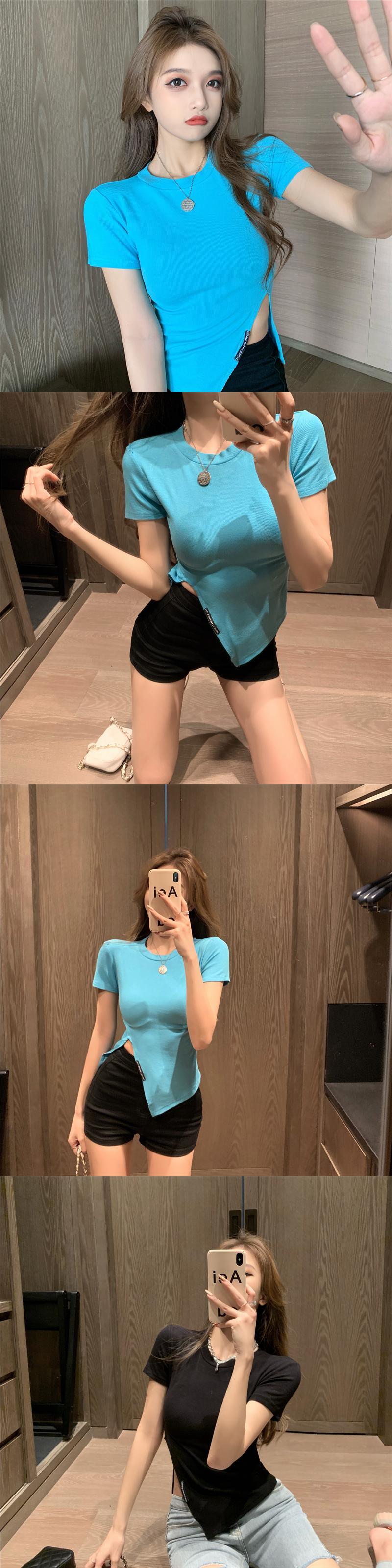 ショートTシャツ シャツ サマースリムスタイルラウンドネックトップス カラー 夏物 Oネック ピュア Xiaofeijia60751356328