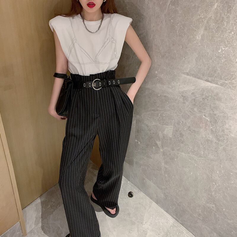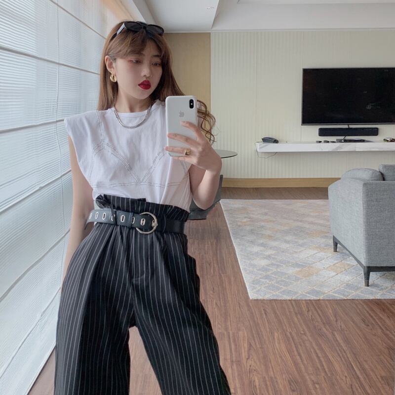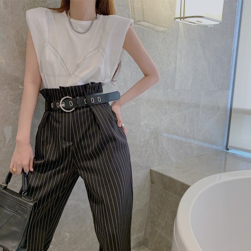 ノースリーブウェストTシャツ サマーストライプハイウェストパンツ 夏物 Xiaofeijia54993685617