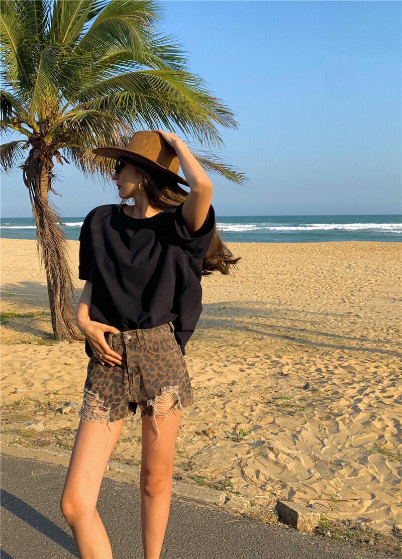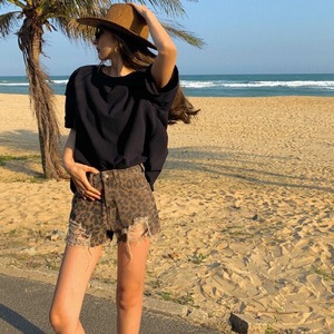 レオパードジーンズ サマーショーツ ルーズパンツ 薄手ウェストワイドレッグ 夏物 ブルマー ワイドパンツ Xiaofeijia20244751900