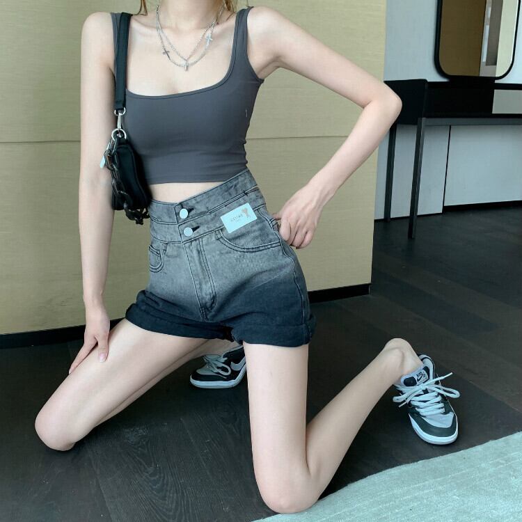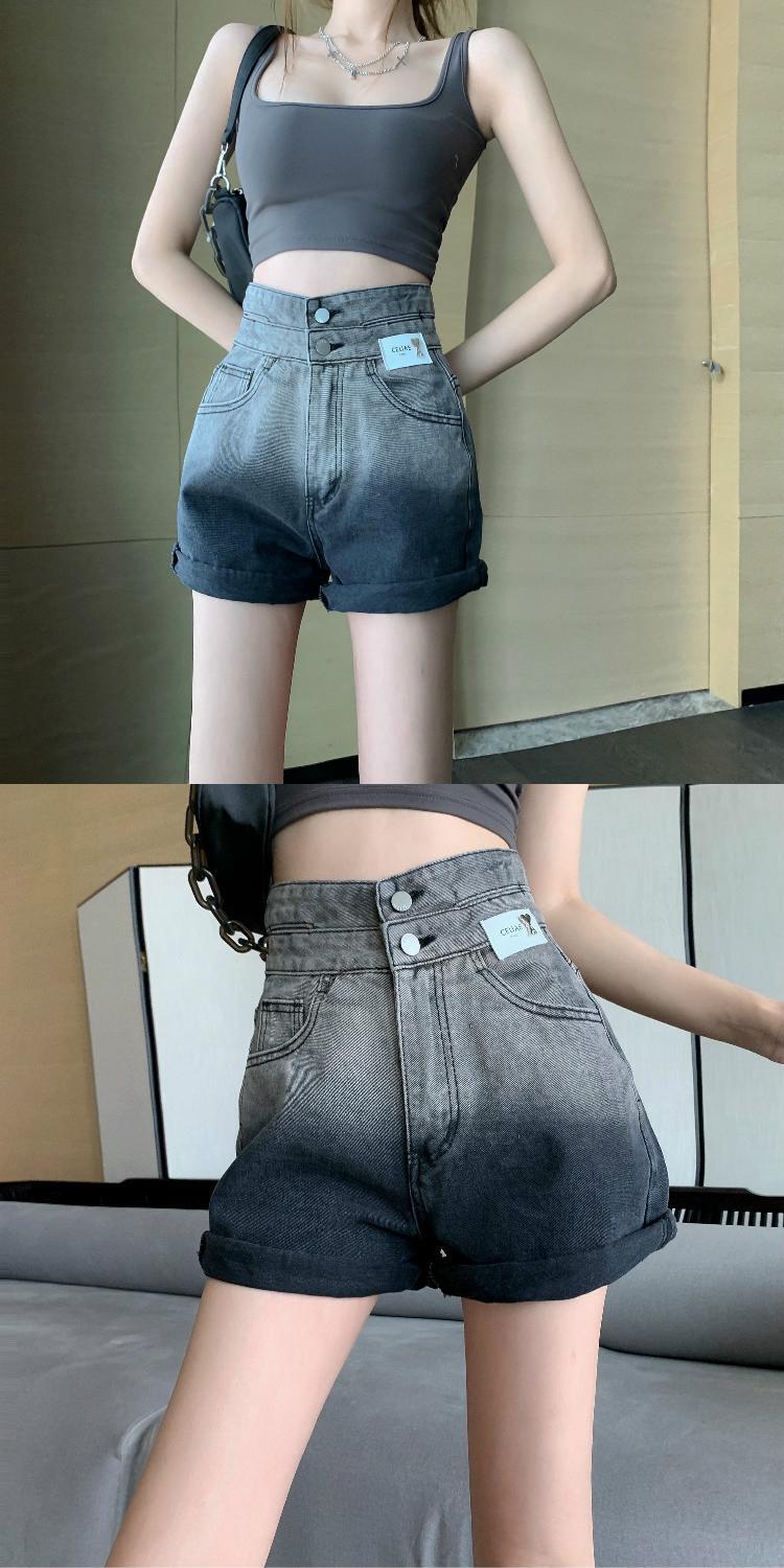 ショートパンツ ハイウェストウェストAラインジーンズ レディースサマールーズスタイル 夏物 Xiaofeijia38495226360