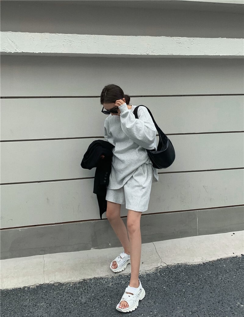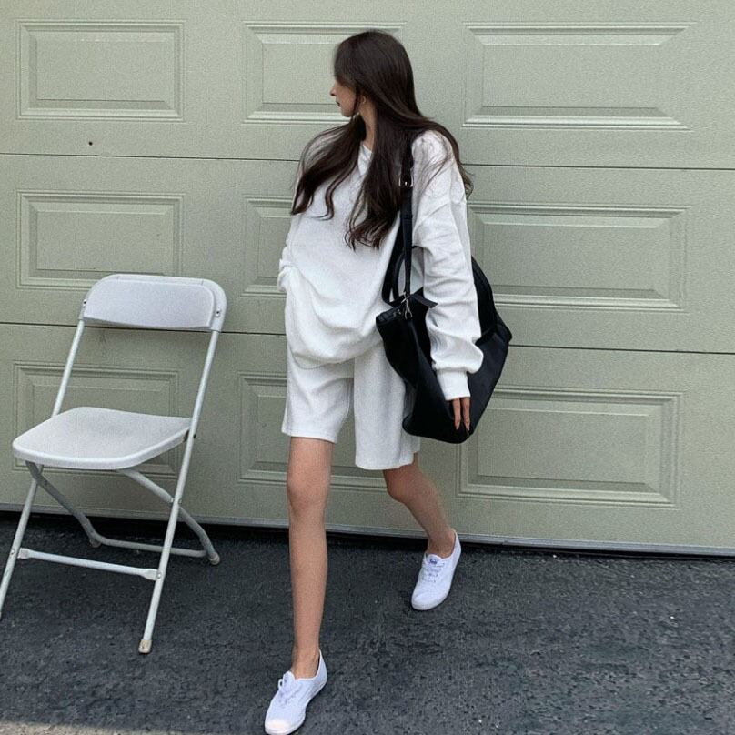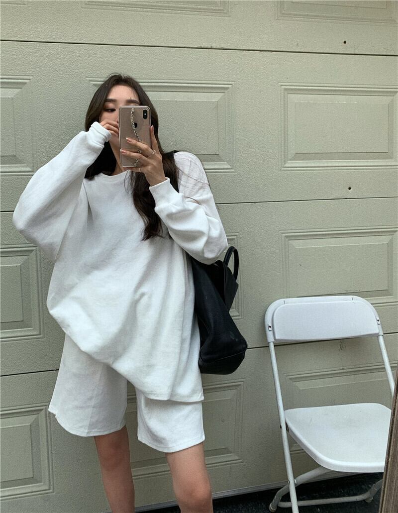 セーター ショーツ レディースサマールーズラウンドネックトップス パンツ ロング 夏物 ブルマー Oネック Xiaofeijia93040521475
