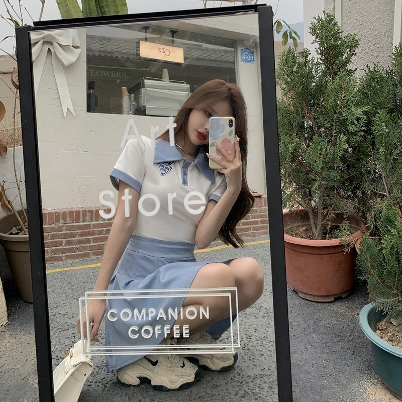サマーシャツ カラートップス ハイウェストプリーツスカート 大人ガーリー スウィート キュート カジュアル 夏物 Xiaofeijia88242928325