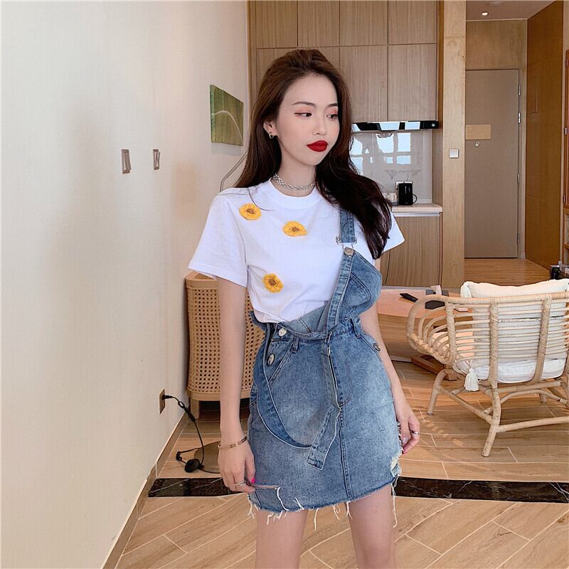 Flowerデザイン Tシャツ サマースカート リボン 夏物 フラワーデザイン Xiaofeijia89065565321