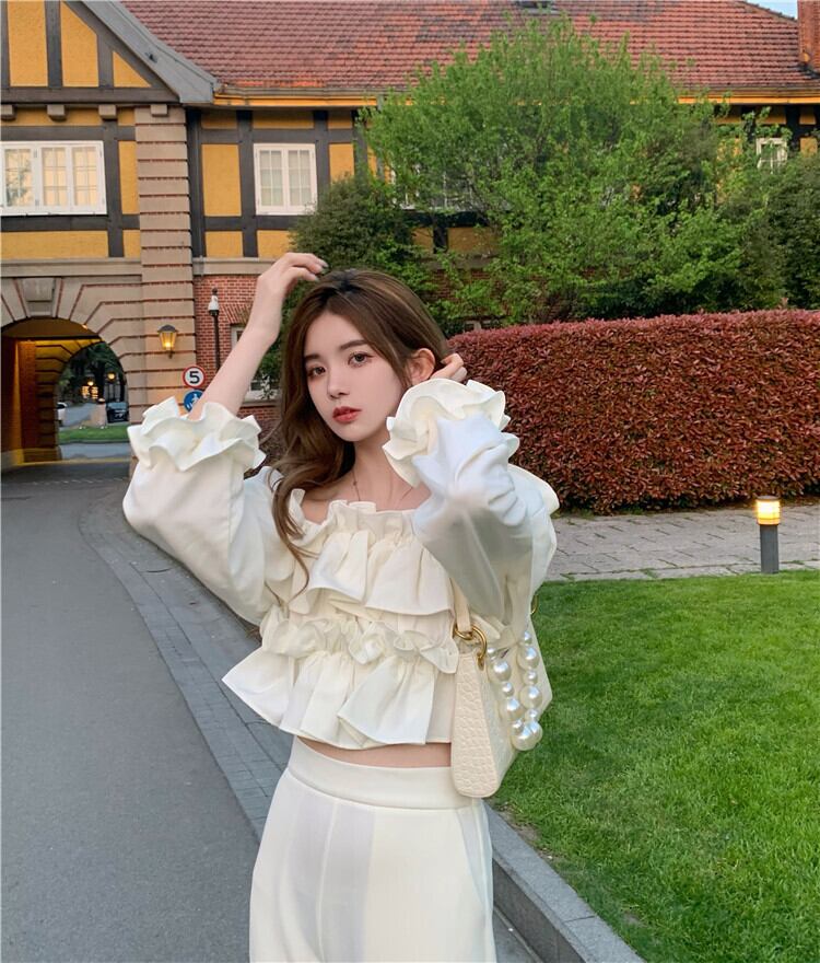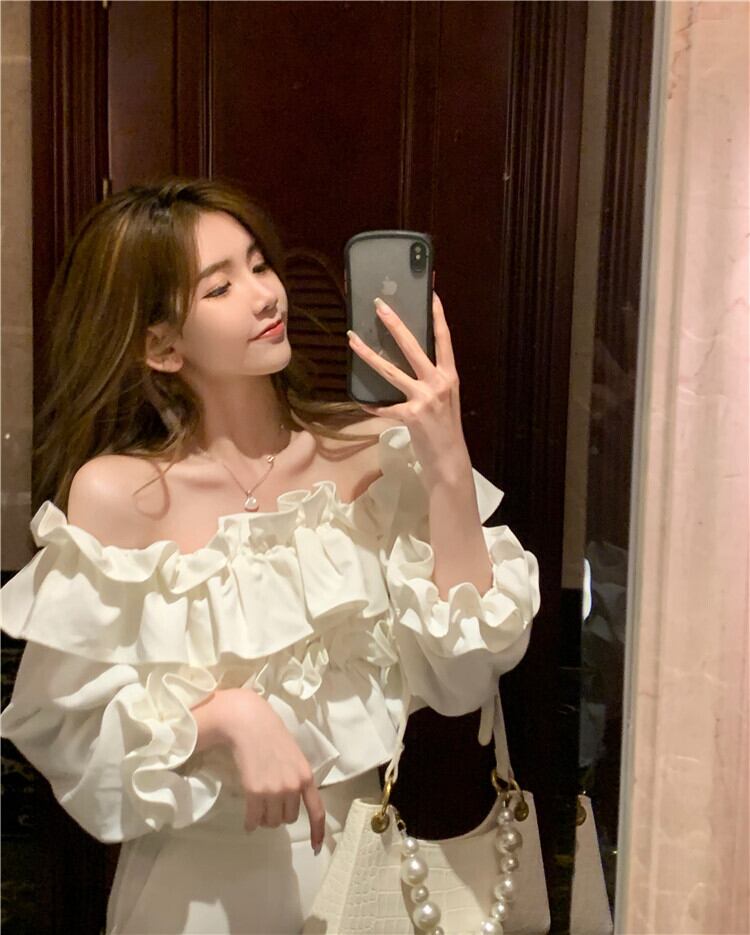 シフォンシャツ レディースストラップレスショートトップス 大人ガーリー スウィート キュート カジュアル Xiaofeijia27767281406