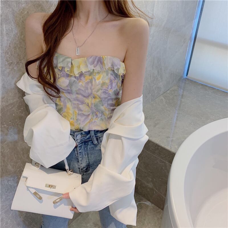 フローラルサマーストレッチトップス ショートレディース エラスティック 伸縮 夏物 花柄 Xiaofeijia32408366185