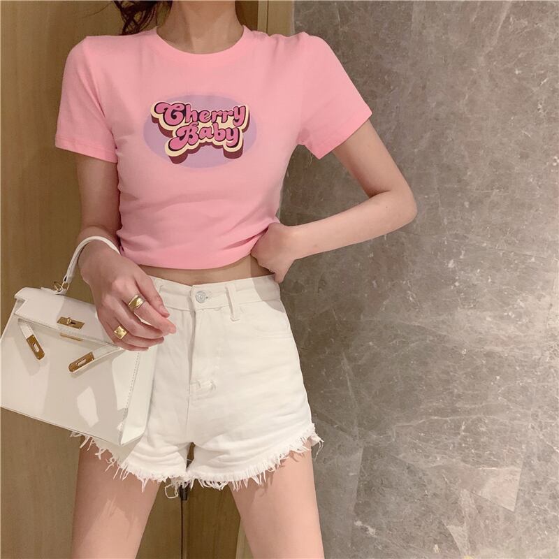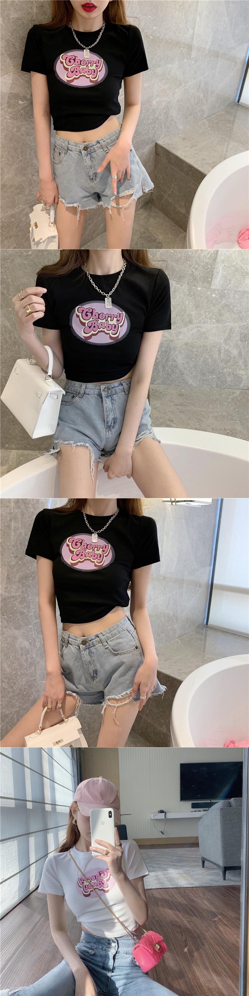 プリントTシャツ サマーショートクロップトップ トップス 大人ガーリー スウィート キュート カジュアル 夏物 Xiaofeijia87066366515
