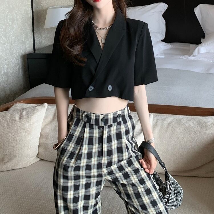 サマーショートジャケット ルーズ格子柄カジュアルパンツ 夏物 Xiaofeijia20142275685