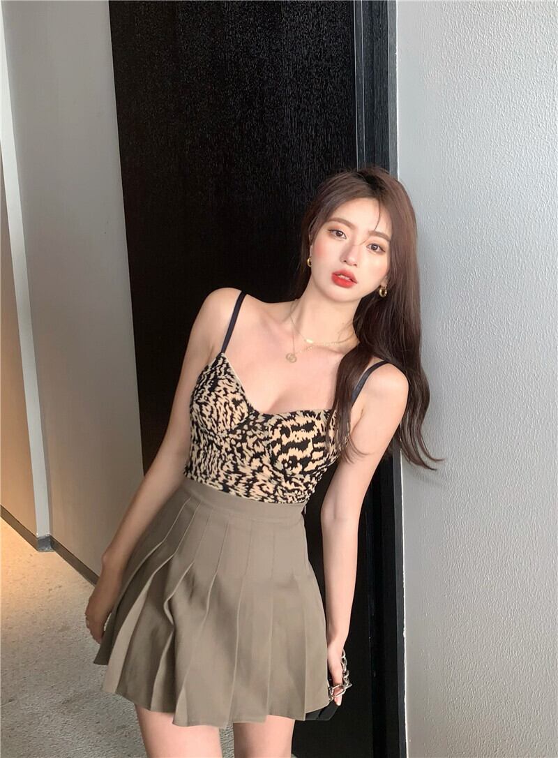 スタイルレオパードプリント柄スリムショートクロップトップ トップス ヨーロピアン Xiaofeijia47645632230