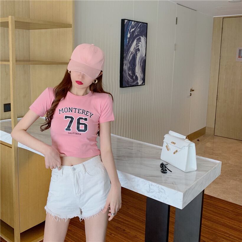 ショートトップス サマースリムプリントTシャツ 半袖 ハーフスリーブ 夏物 Xiaofeijia83721408197