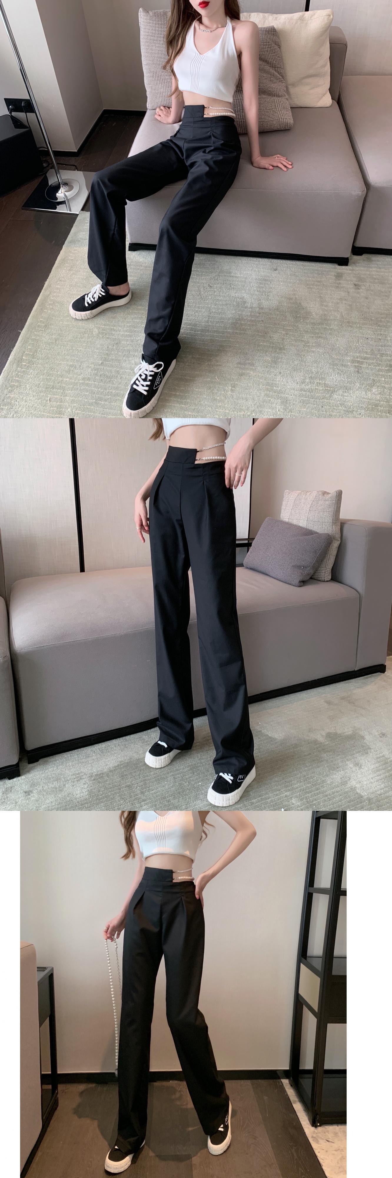 ホワイトパンツ サマーウェストチェーン パールハイウェストルーズカジュアル 夏物 真珠 Xiaofeijia3594792513