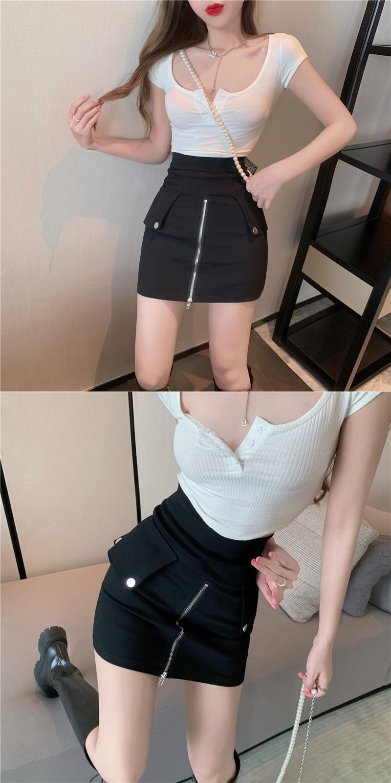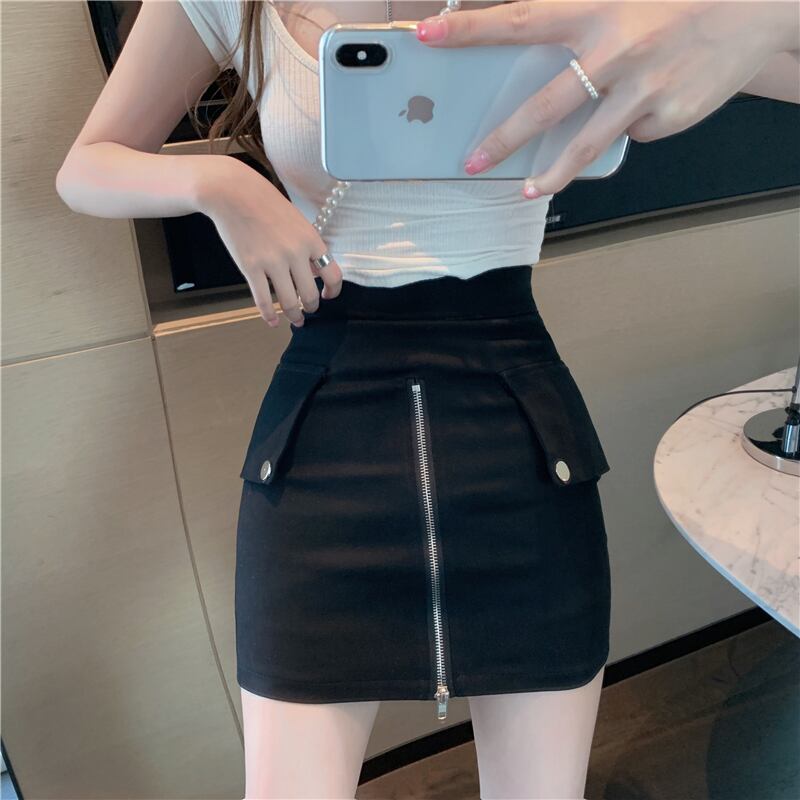 ハイウェスト薄手ジッパースカート ソリッド カラーAライン ソリッドカラー Xiaofeijia57282830824