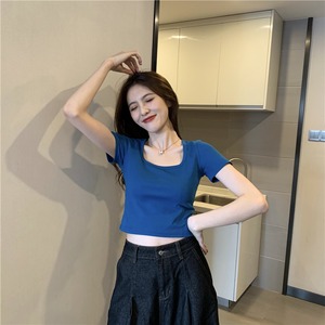 サマーショートTシャツ スタイルスリムトップス ソリッド カラーレッド 夏物 ソリッドカラー スクウェア Xiaofeijia33391742748