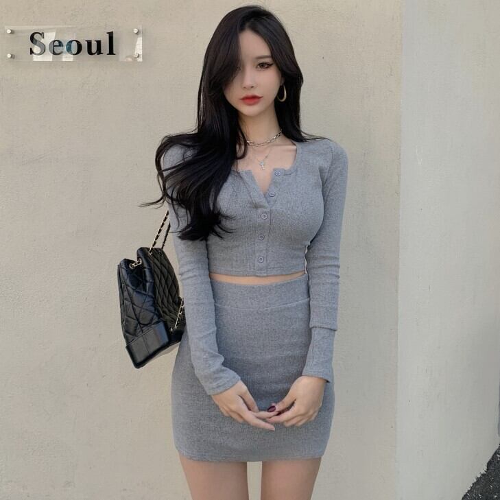 スプリングオータムショートトップス ハイウェストウェストスカート ロング 春物 秋物 Xiaofeijia54319195118