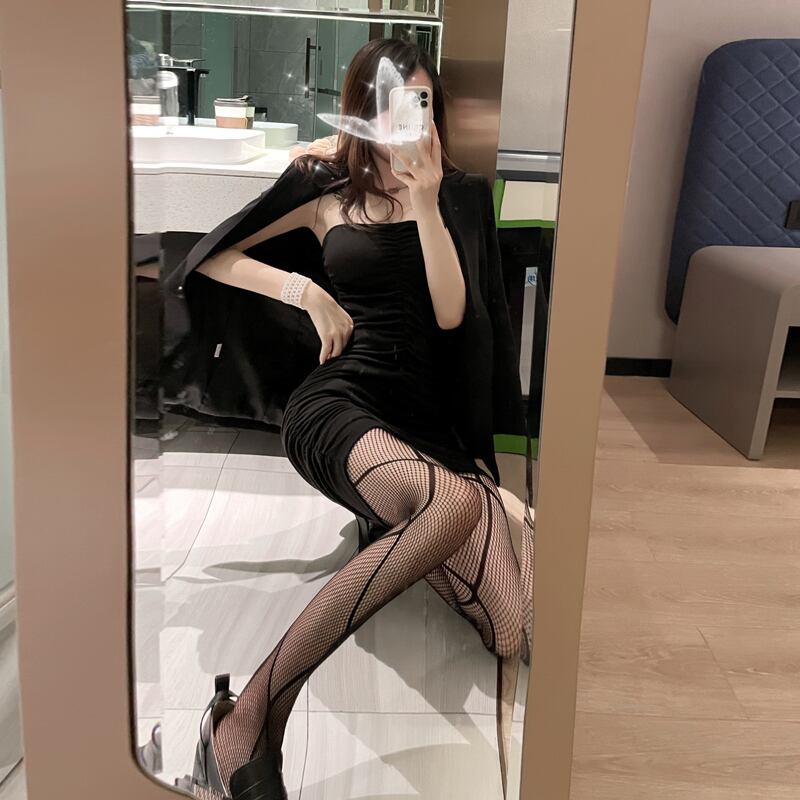 レッドブラックストッキング サマーネットソックス 夏物 タイツ シルク Xiaofeijia97729944155