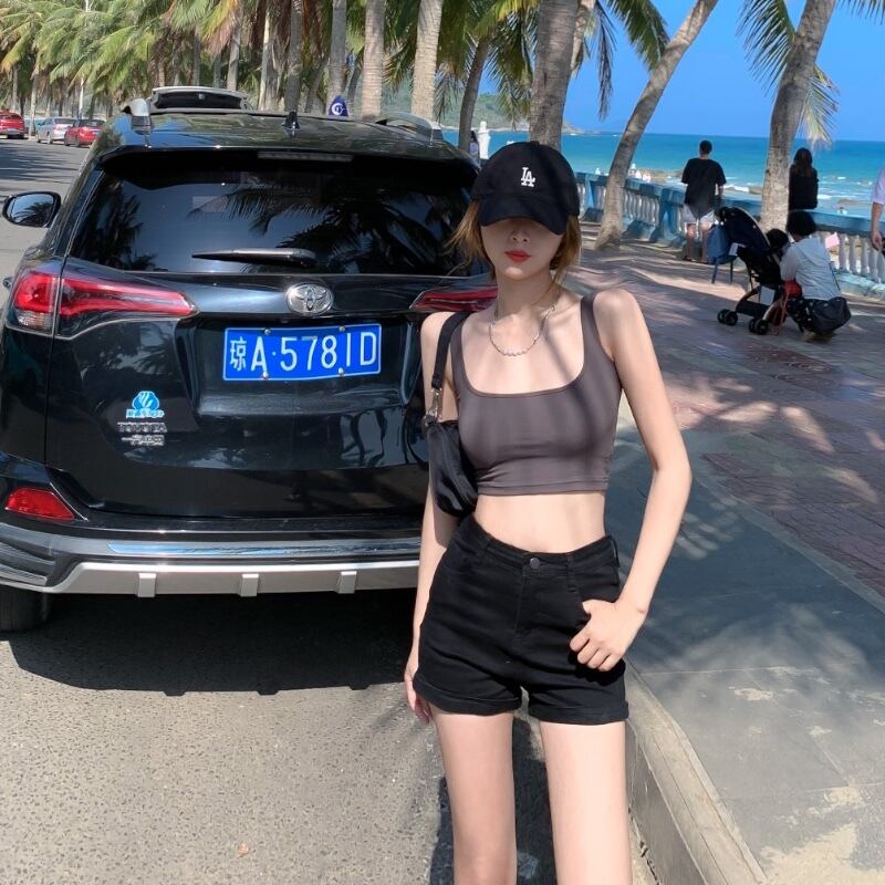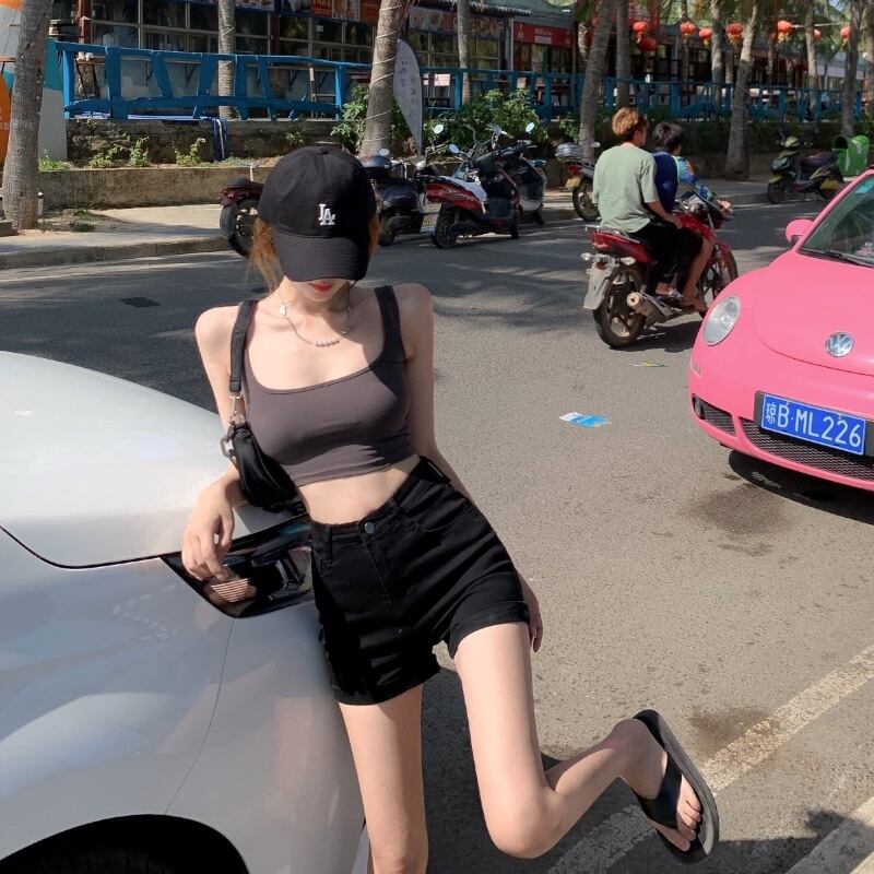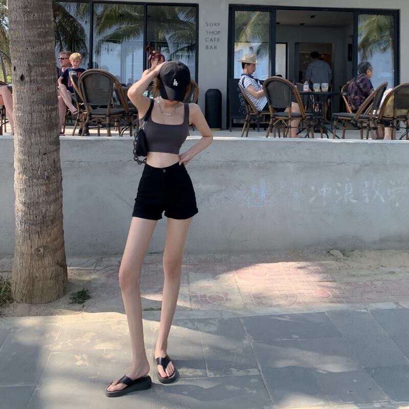 ブラックハイウェストショーツ サマー薄手ルーズAラインパンツ 夏物 ブルマー Xiaofeijia19060784638