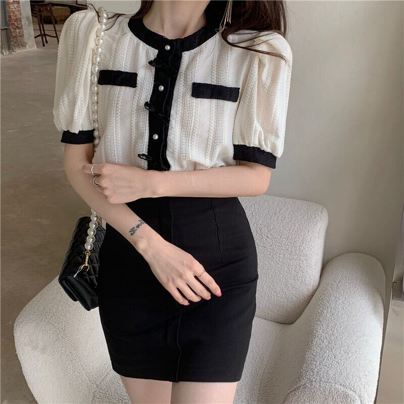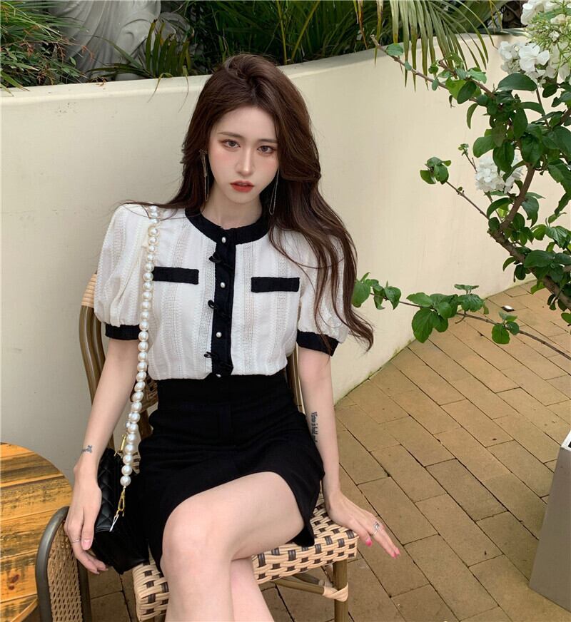 カラーリボンシャツ スリーブトップス レースサマーショート 半袖 ハーフスリーブ 大人ガーリー スウィート キュート カジュアル 夏物 Xiaofeijia63335368977