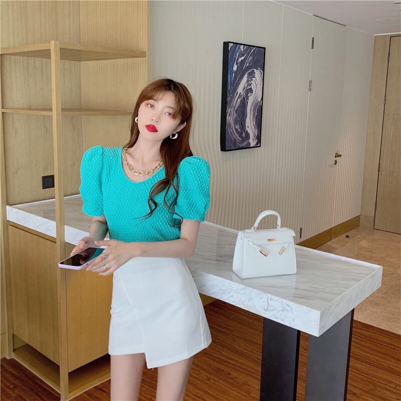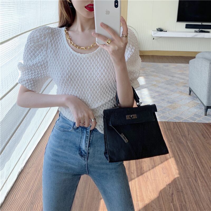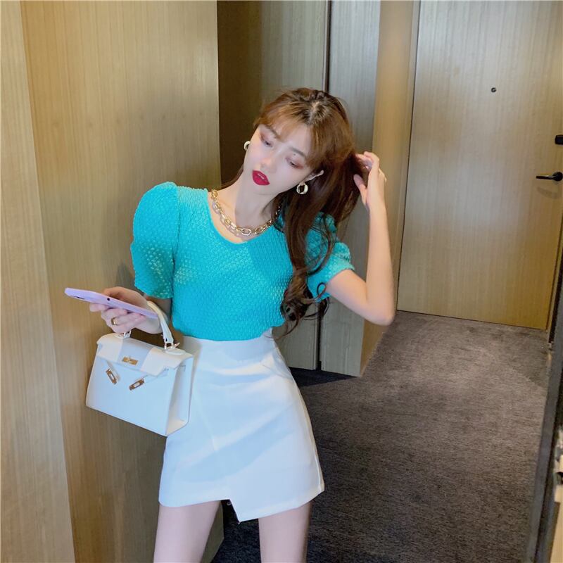 Tシャツ シャツ サマーラウンドネックチェーン ショートハイウェストトップス 夏物 Oネック Xiaofeijia6977775556