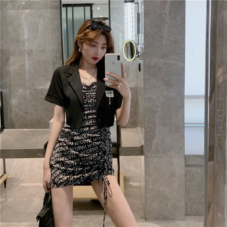 サマースタイルショートジャケット ギャザースカート 夏物 Xiaofeijia57987345317