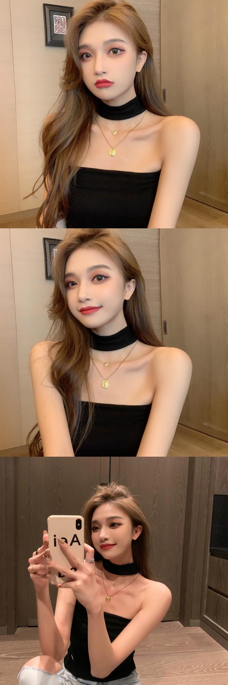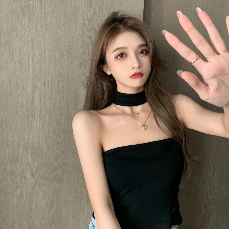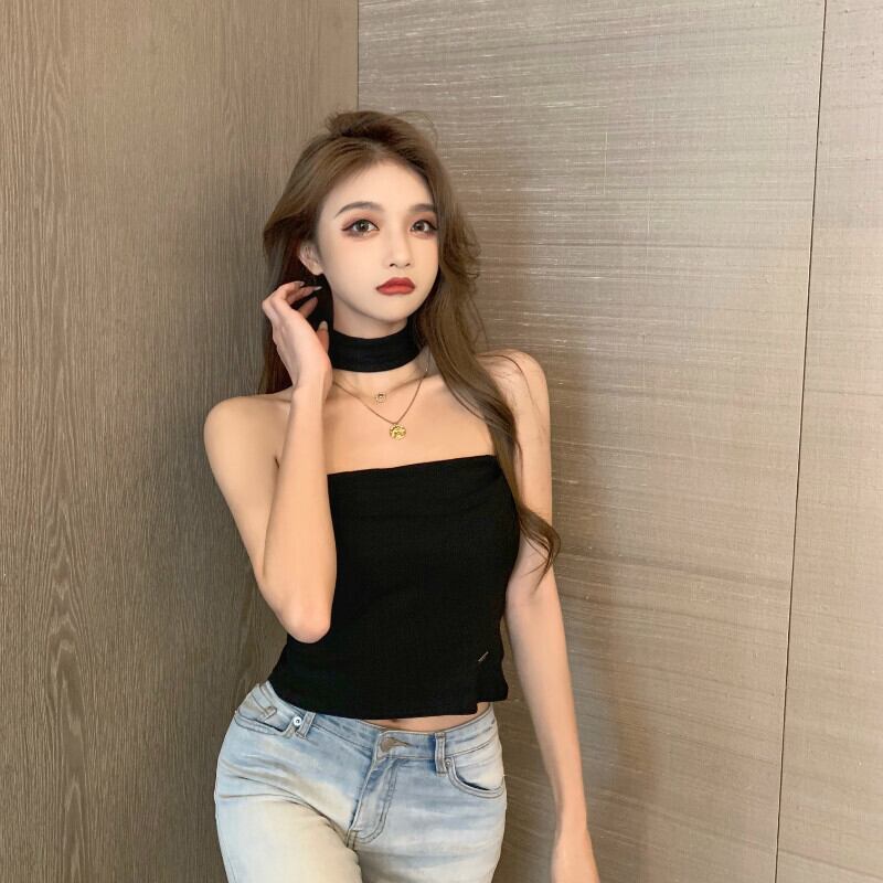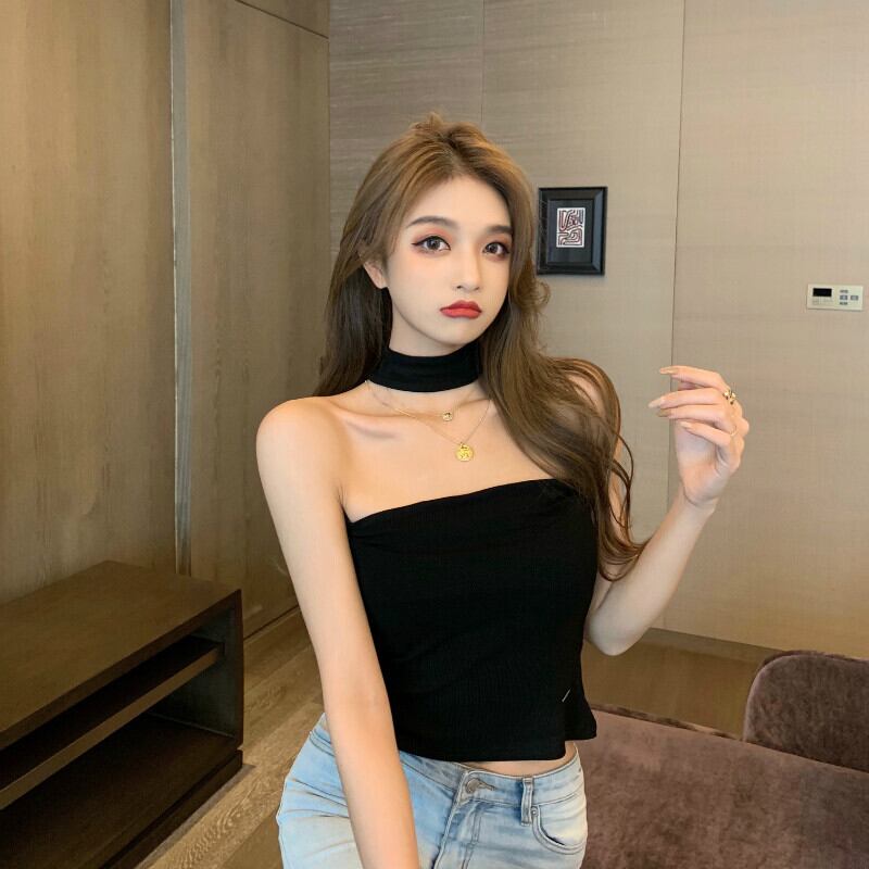 ホルタートップス サマーショートストラップレスノースリーブブラックシャツ 夏物 Xiaofeijia7434596129