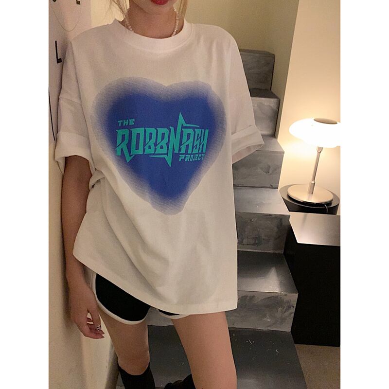 ルーズバックプリント柄ラウンドネックTシャツ レディース Oネック Xiaofeijia1526796440