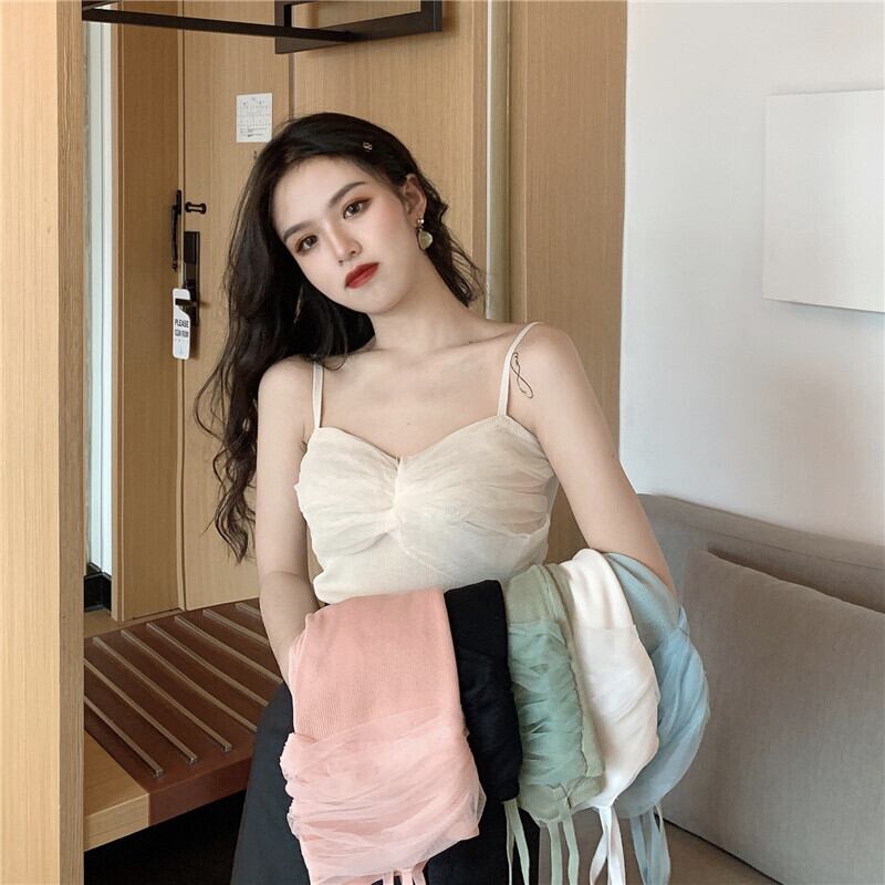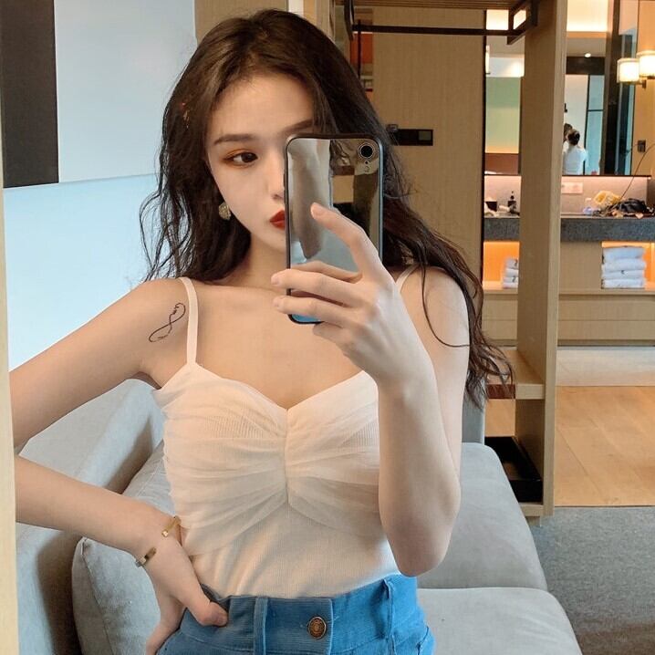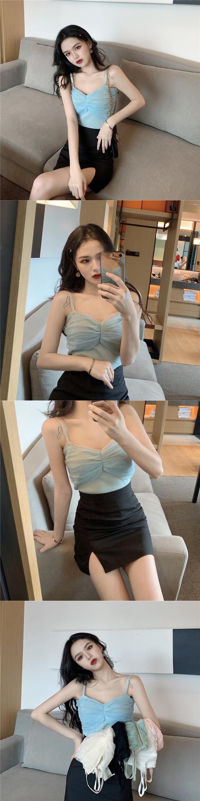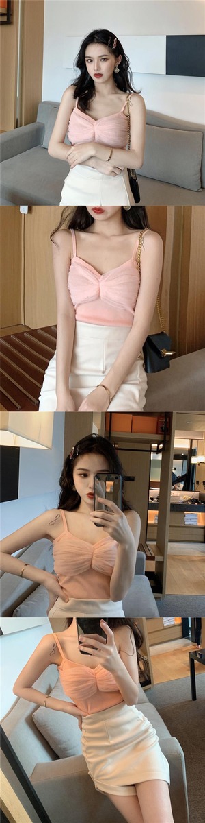 メッシュニットシャツ サマーショートノースリーブスタンダードトップス レトロ 半袖 ハーフスリーブ 夏物 ステッチ Xiaofeijia35489505167