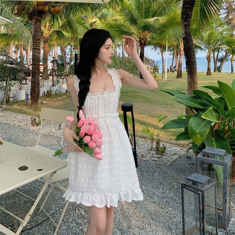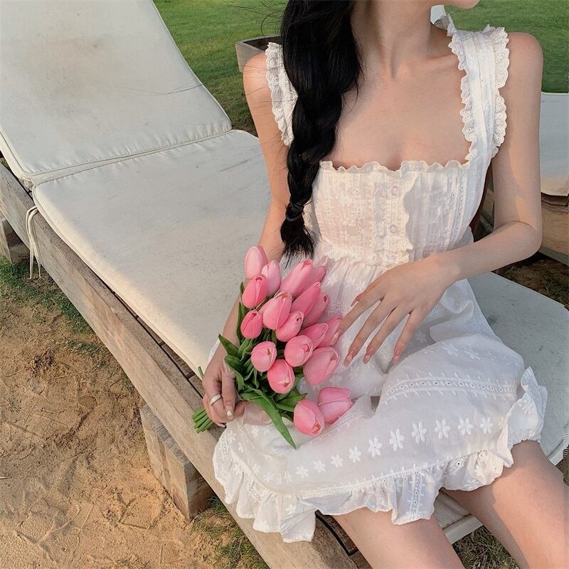 ドレス レッド コットン 刺繍 フラワーデザイン Xiaofeijia17149711255
