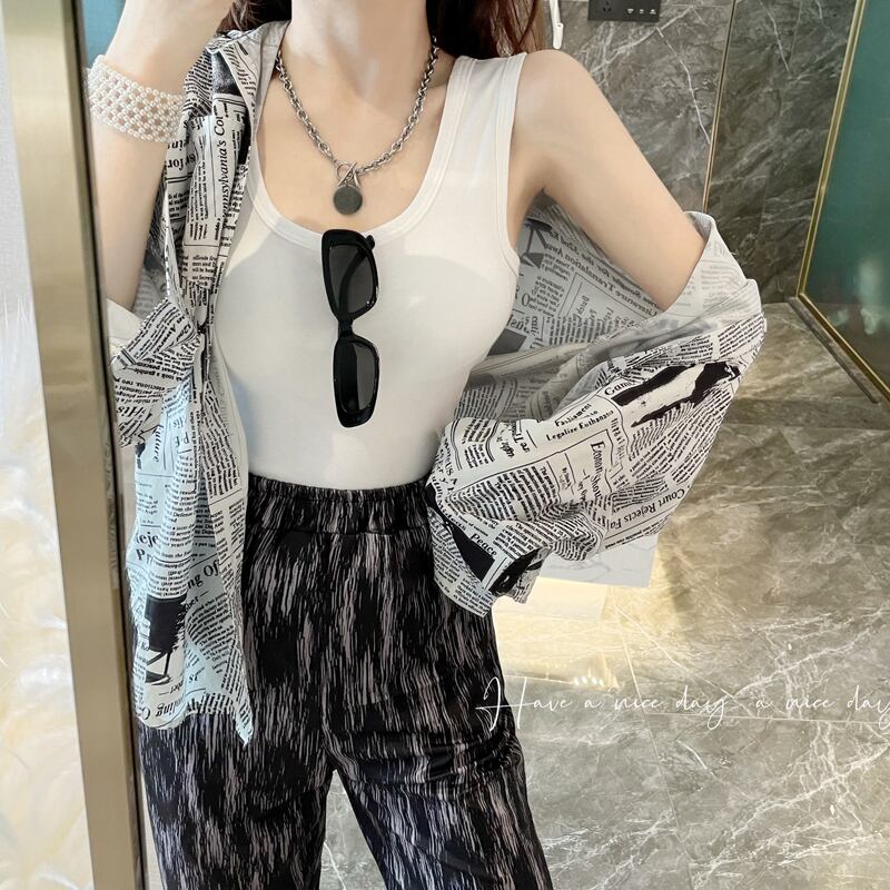 タンクトップトップス スリムサマーソリッド カラーノースリーブジャケット 夏物 ソリッドカラー Xiaofeijia24770114570