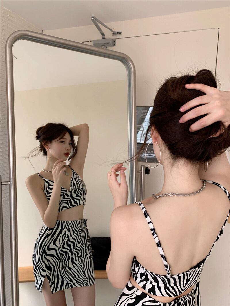 Vネックレオパードプリント柄セット Xiaofeijia58396294824