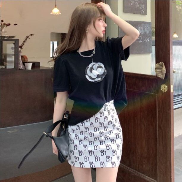 サマー半袖スリーブトップス ウェストスカート ショート ハーフスリーブ 夏物 Xiaofeijia25452444402