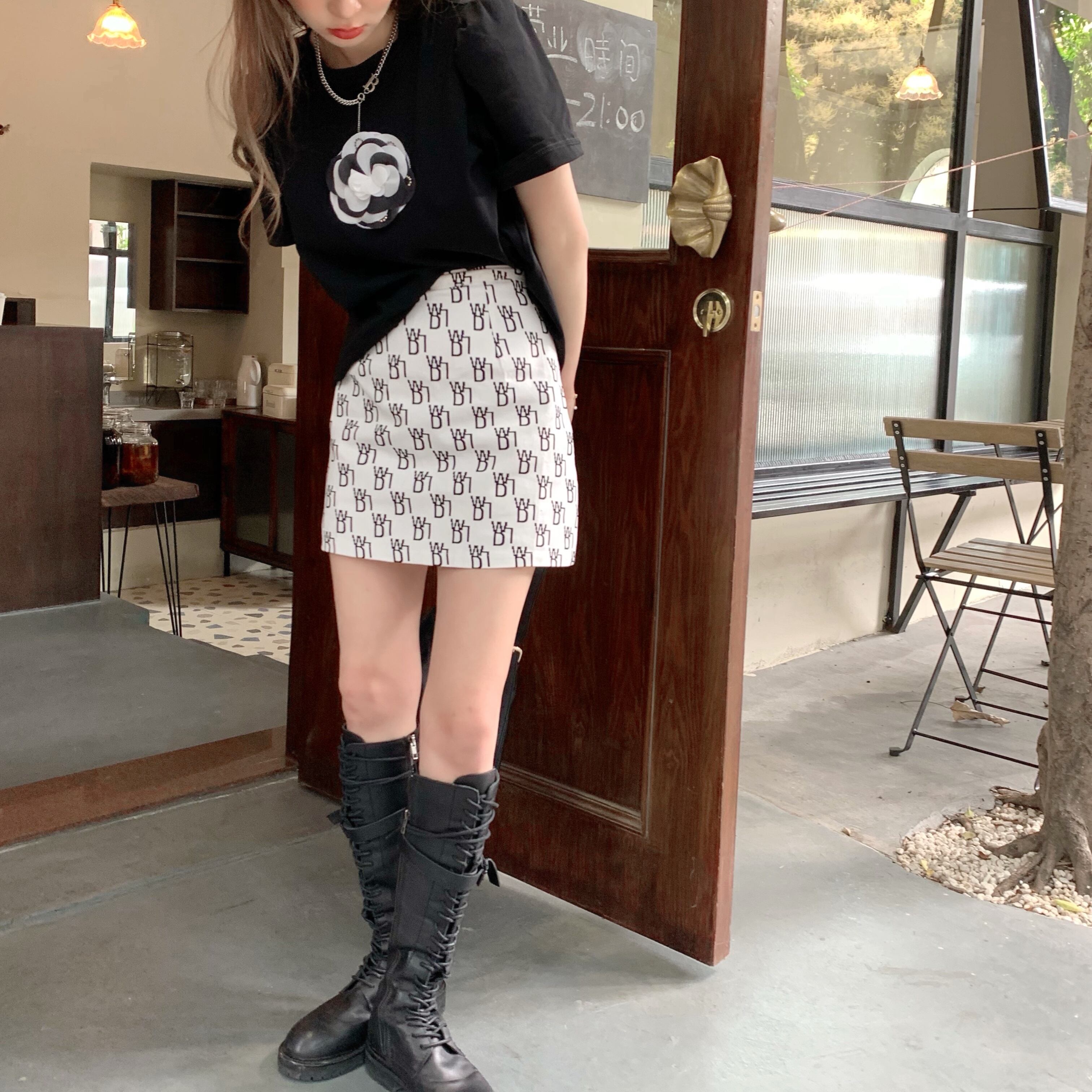 色:ブラックT,ホワイトT,白地に黒のスカート,黒に白いスカート