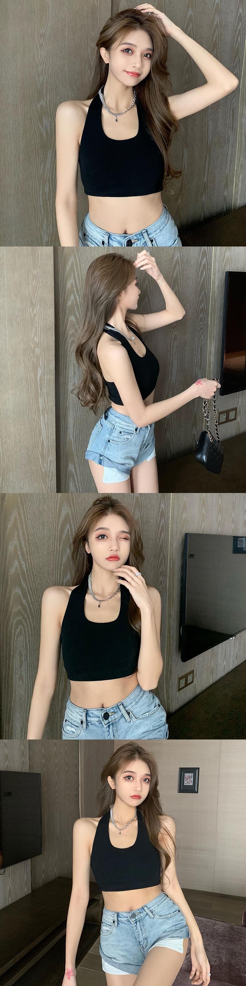 ホルターシャツ サマーショートトップス レディース 夏物 Xiaofeijia23027592671