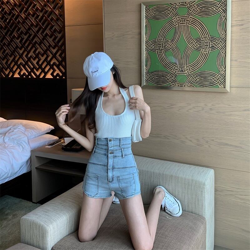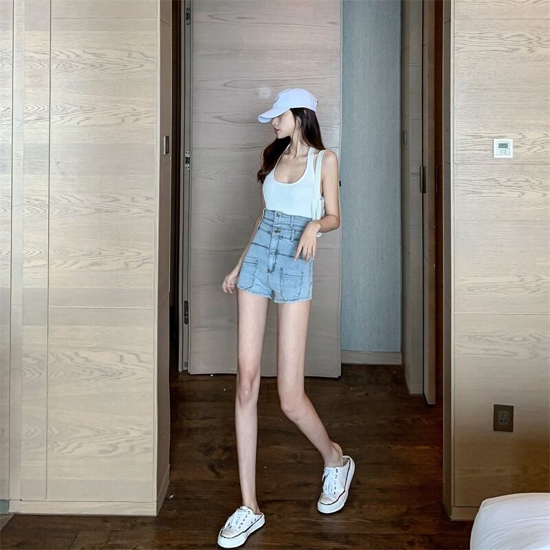 ジーンズ スプリングウェストパンツ スリムショーツ ダブル薄手 春物 ブルマー Xiaofeijia3431525728