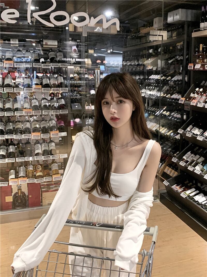 スタイルサマーショートジャケット ワイドレッグパンツ レッド 夏物 ワイドパンツ Xiaofeijia48511353008