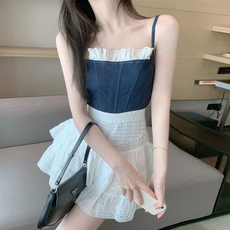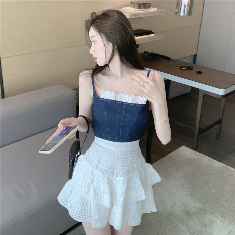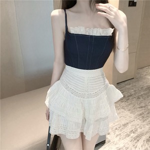 レースショートトップス サマーハイウェストウェストスカート レディース 大人ガーリー スウィート キュート カジュアル 夏物 Xiaofeijia2948029772