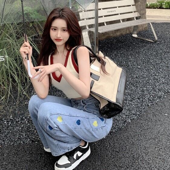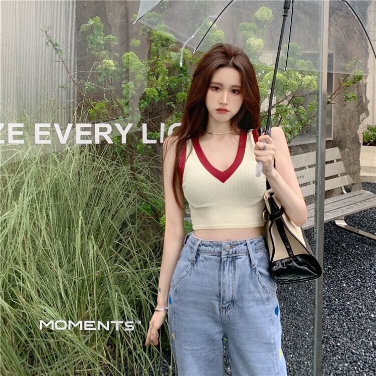 カラーVネックサマーノースリーブシャツ ショートスタイルバックトップス 夏物 Xiaofeijia60052911499
