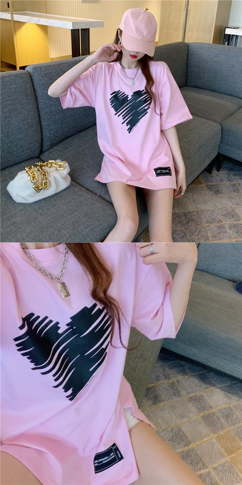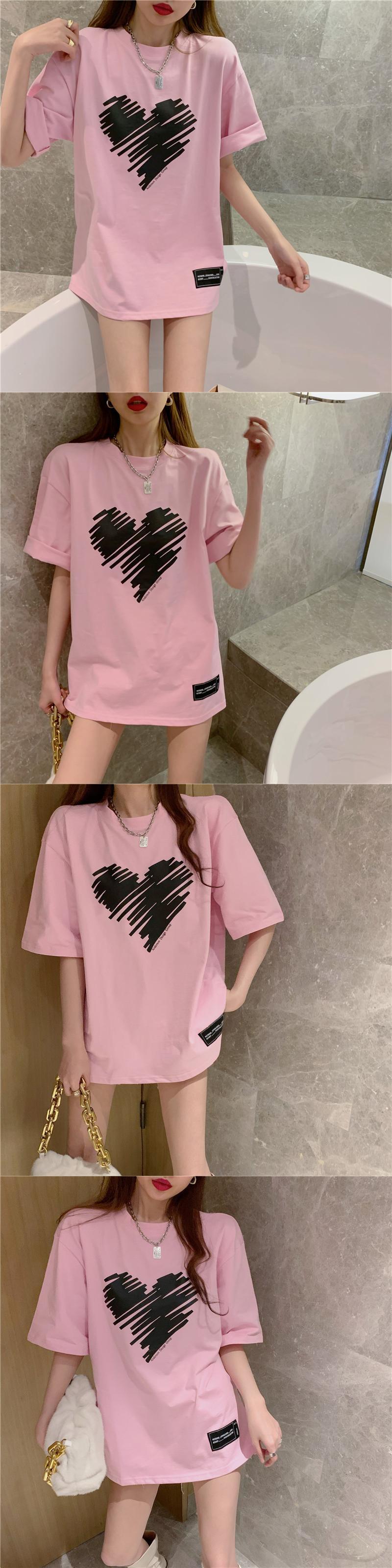 ルーズTシャツ サマーラウンドネックプリントトップス 夏物 Oネック Xiaofeijia39960314996