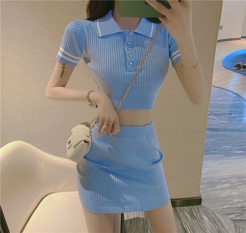 ニットショートシャツ トップス スカート サマー 夏物 Xiaofeijia39845088220