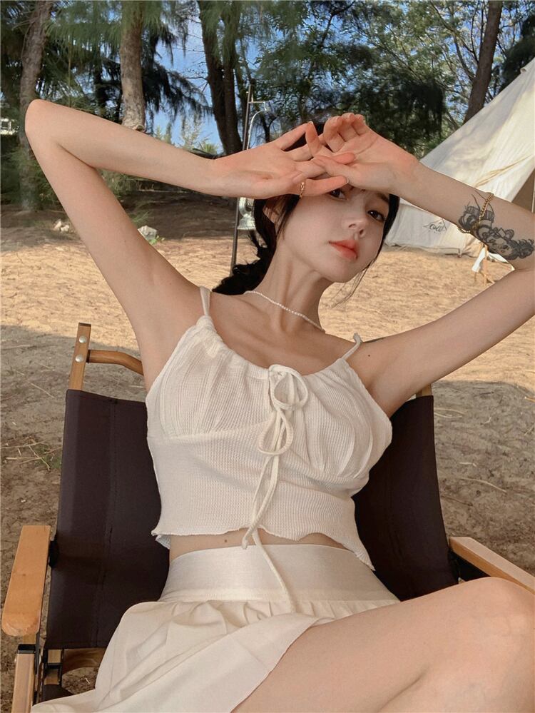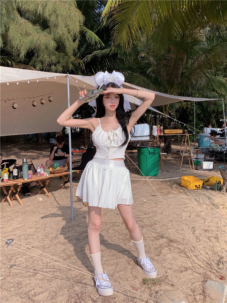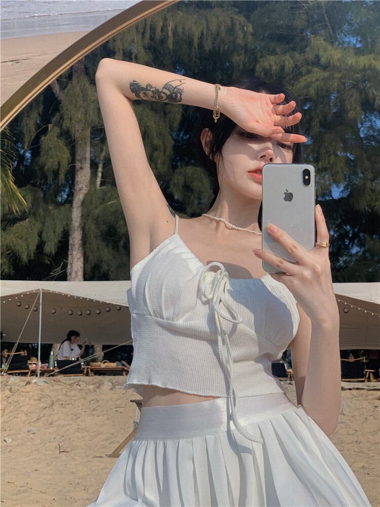 サマーハイウェストウェストプリーツスカート 夏物 Xiaofeijia25747404567