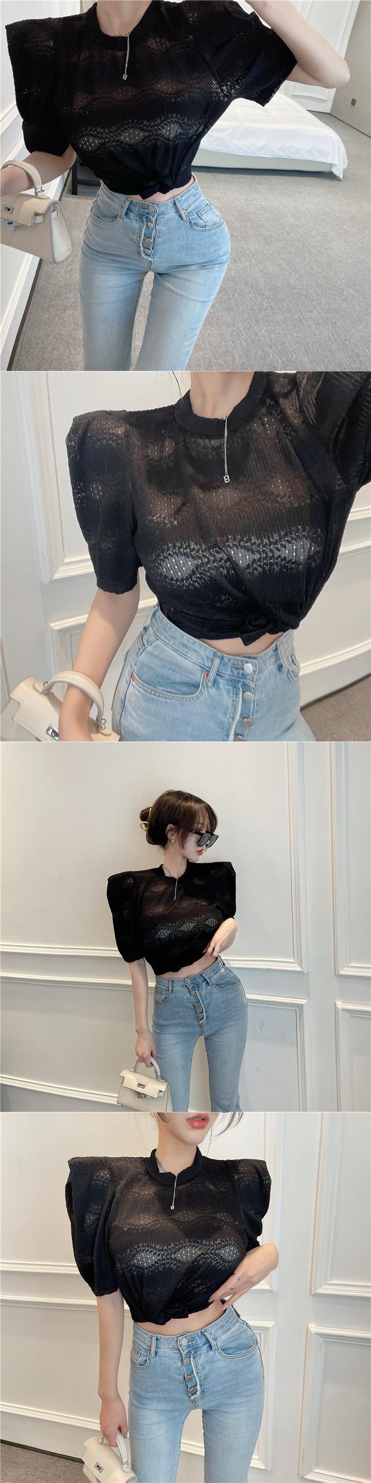 メッシュレースシャツ スタイルスリム薄手スリーブトップス Xiaofeijia8843392005
