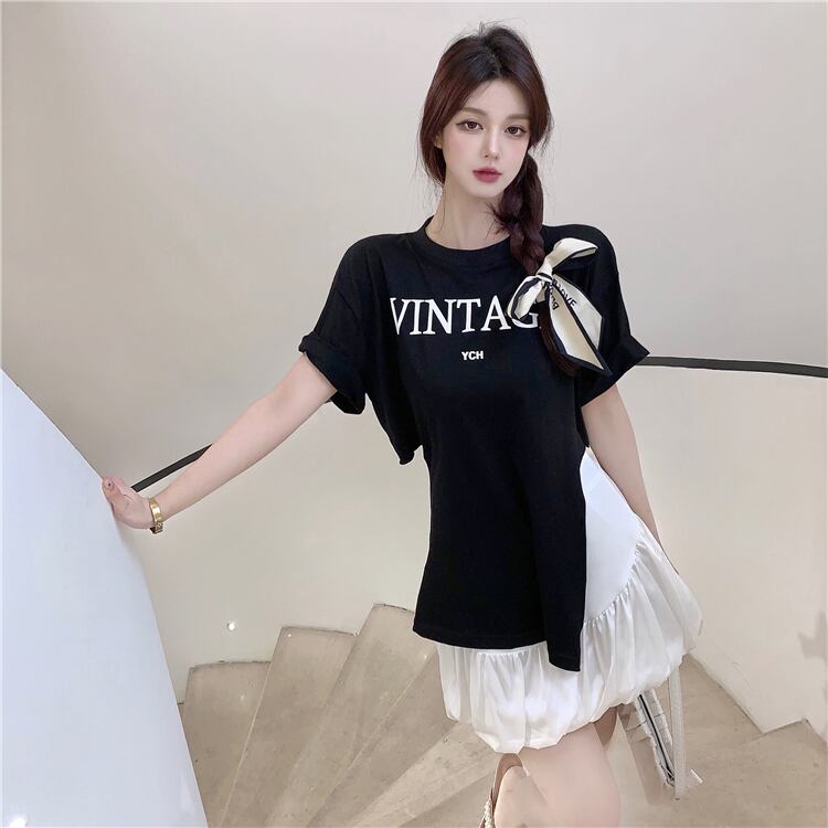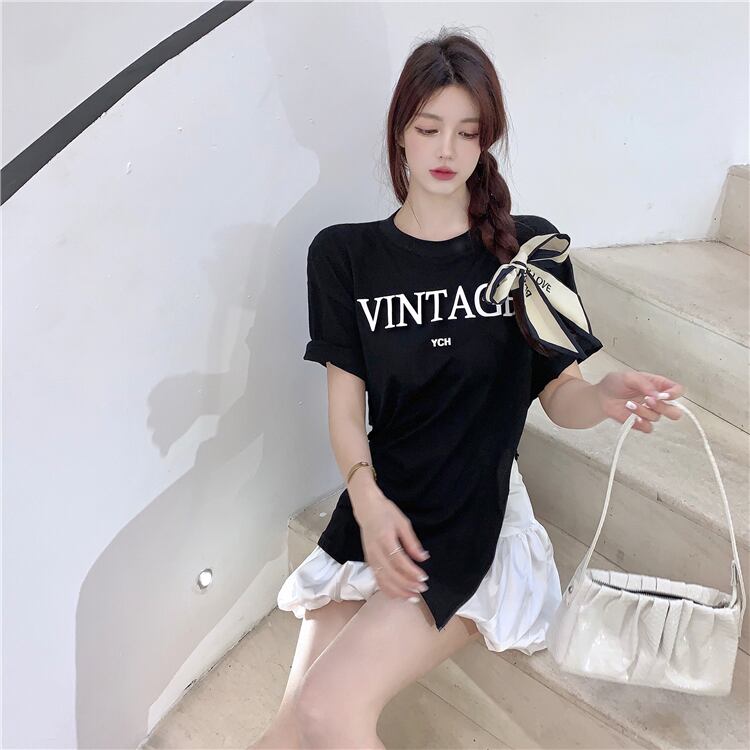 ウェストジッパーTシャツ ハイウェストスカート Xiaofeijia88328819182
