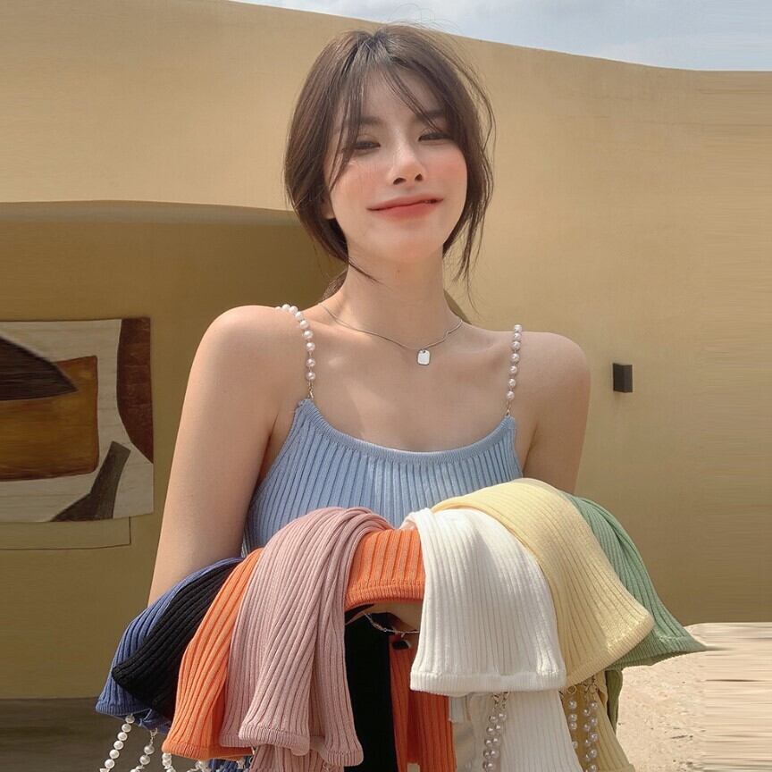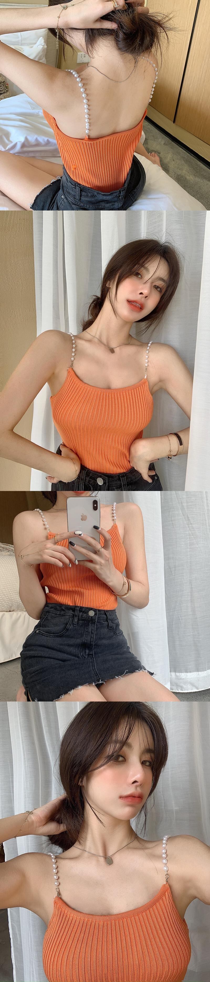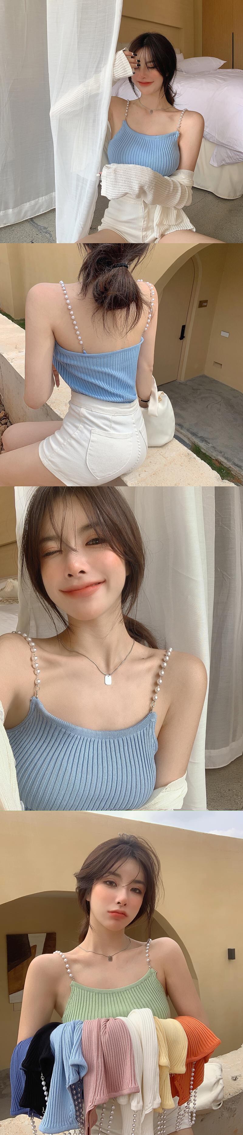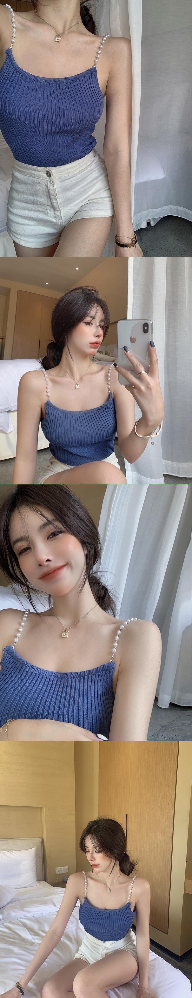 サマーニットパールスタイルスリムノースリーブコート 夏物 真珠 Xiaofeijia77945238717