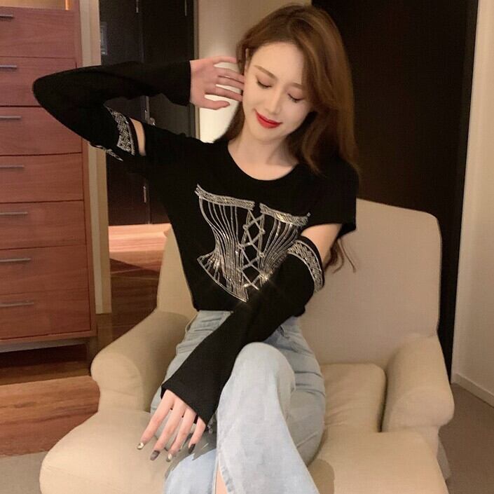 スプリングTシャツ シャツ スリムラウンドネックトップス ロング 春物 Oネック Xiaofeijia24347812604