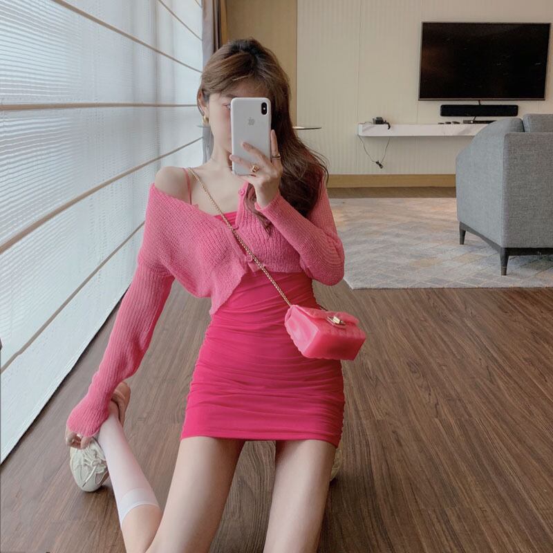 スタンダードショートカーディガンニットスカート レトロ Xiaofeijia9161113774