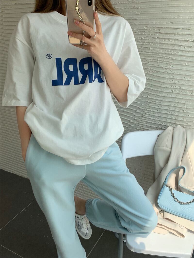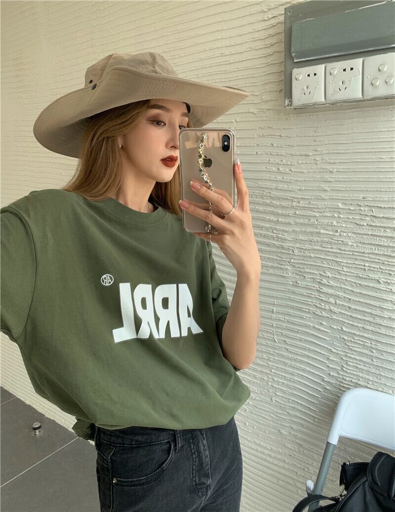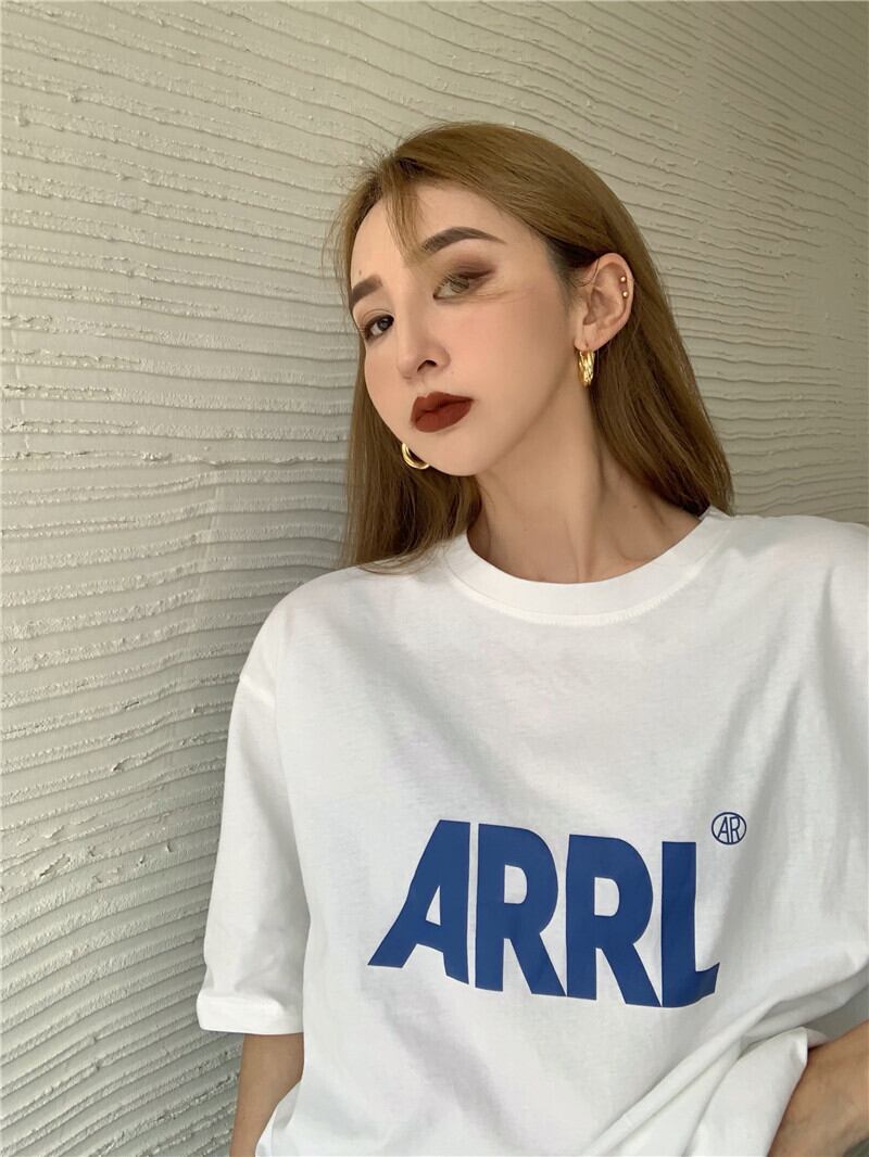 レッドトップス レディースサマールーズプリントTシャツ 夏物 Xiaofeijia74129095759