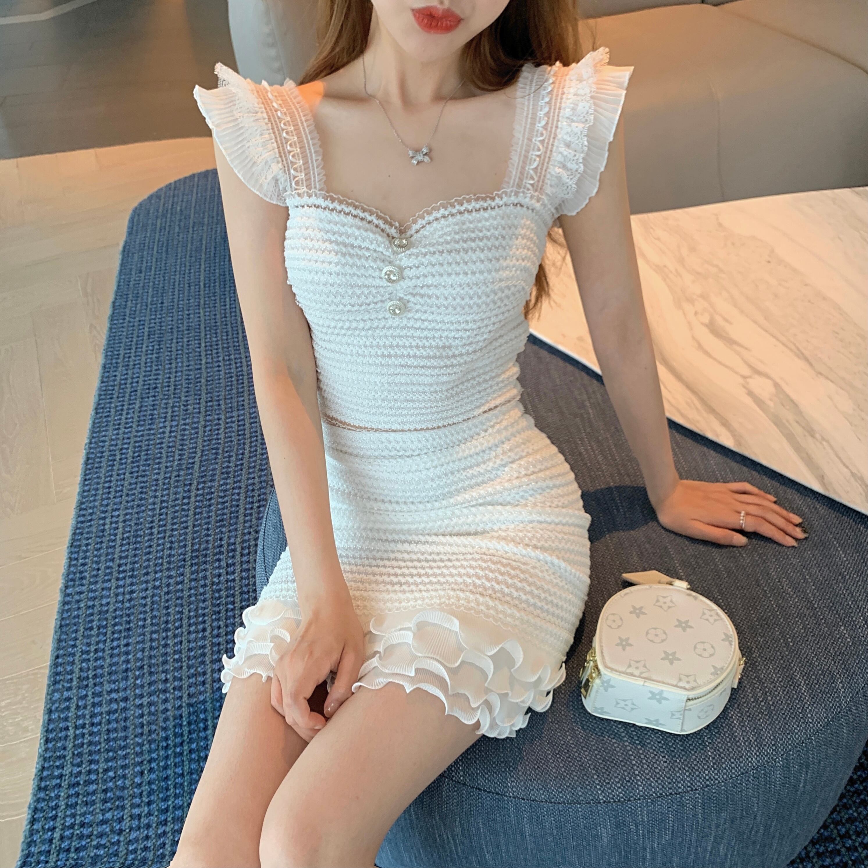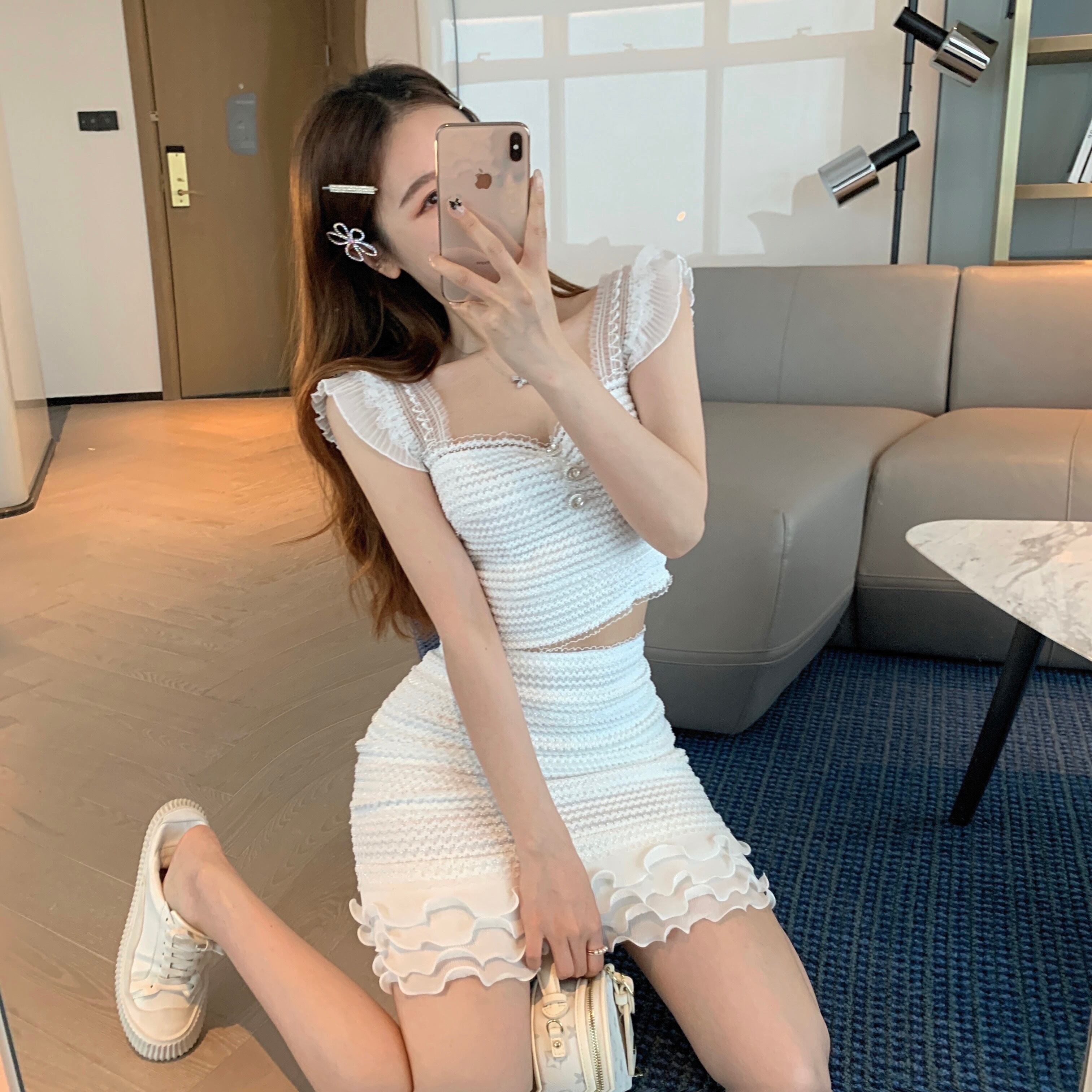 レースサマーホワイトトップス ショートスカート 夏物 Xiaofeijia456622499