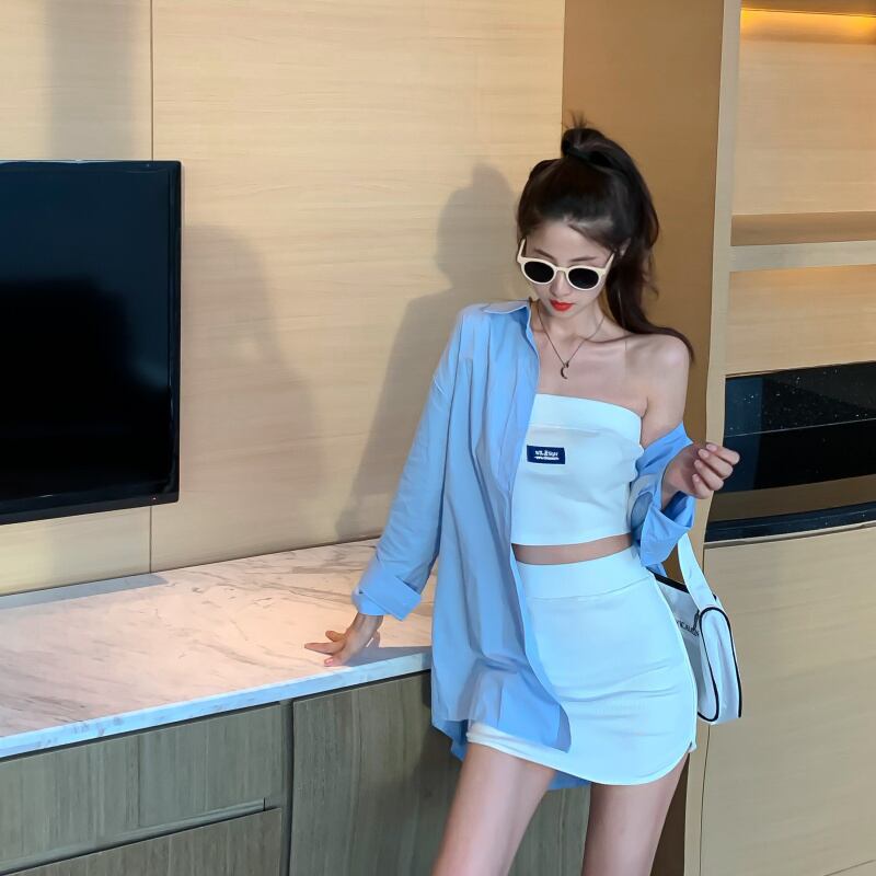 サマーショートトップス スカート 薄手シャツ レディース 夏物 Xiaofeijia62378521699
