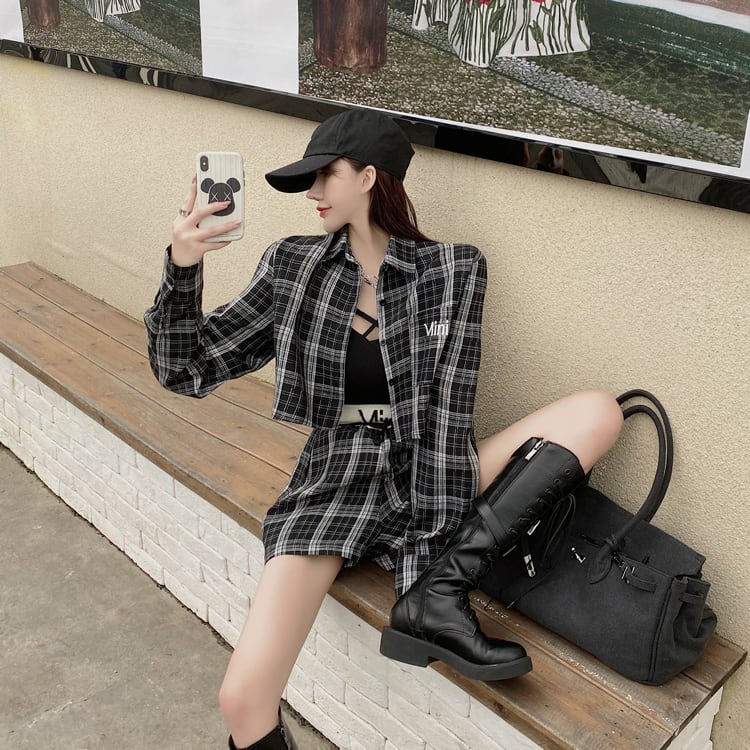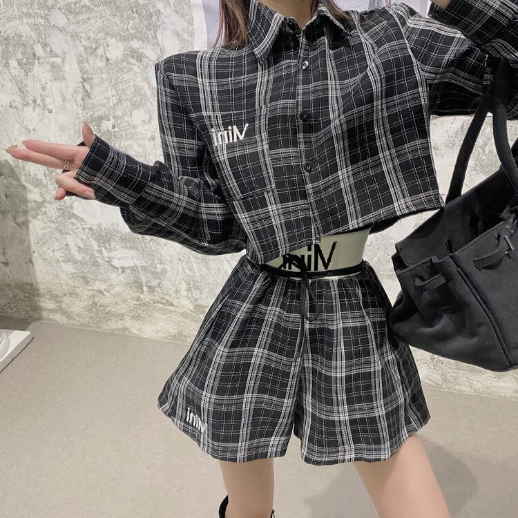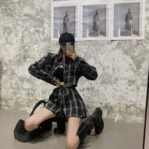 スプリング格子柄ジャケット クロスショーツ 春物 ブルマー Xiaofeijia80685507421